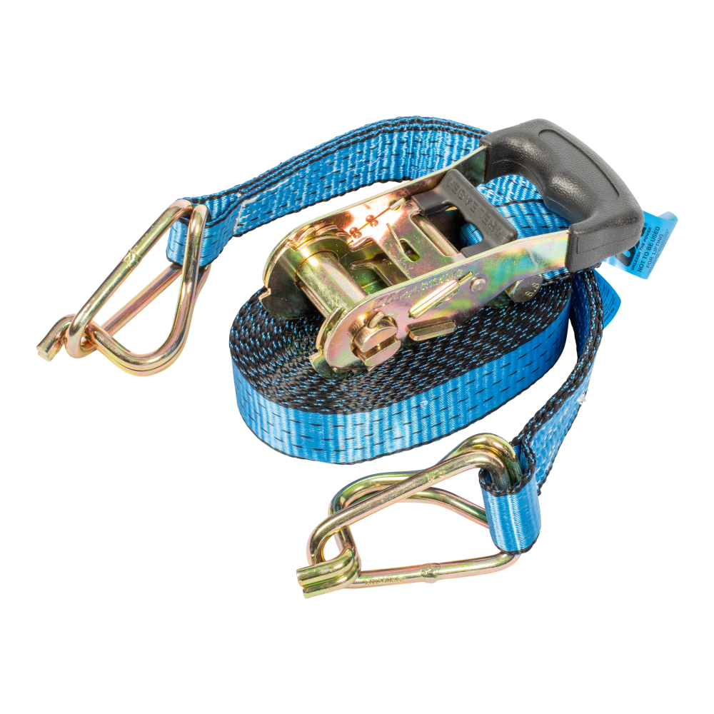 Built with the tradesman in mind, the OX Pro 35mm x 6m Ratchet Tie Down – Single offers robust and efficient load-securing capabilities. This heavy-duty strap is designed for durability and reliability while remaining lightweight, ensuring ease of use without compromising on strength. Featuring a double locking mechanism, it guarantees a secure hold on cargo, meeting the AS/NZS standards for safety and reliability. The 35mm x 9m blue polyester strap provides a lashing capacity of 2500kg, offering dependable support for various load-bearing needs. Whether for professional construction tasks or securing goods during transportation, this OX tie-down strap provides a trustworthy solution for safely and securely fastening loads.