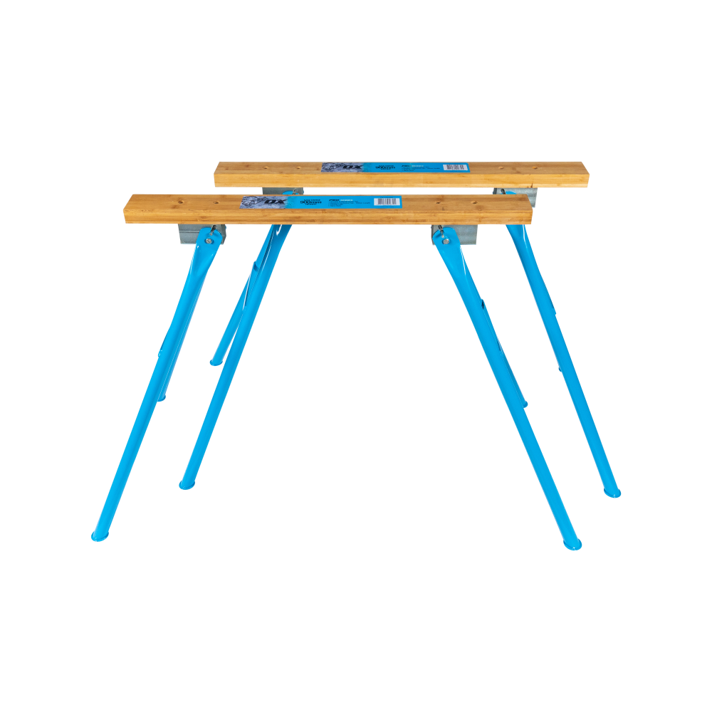 The OX Pro 900mm Saw Horse provides heavy-duty support on the job site with its folding legs and lockable design. At a length of 900mm and featuring a solid 1000mm bamboo benchtop, it offers durability and sturdiness for various tasks.