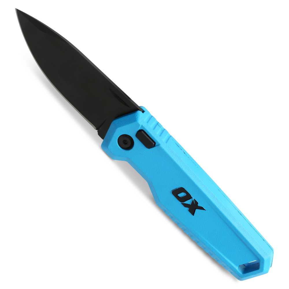 The OX Pro Folding Pocket Knife delivers reliable pocket knife performance in a compact folding form. Featuring a sharp blackened stainless steel blade with hardened, tempered construction for clean cuts and long-lasting edge retention. The blade is fully resharpenable, making it a sustainable choice for tradespeople.