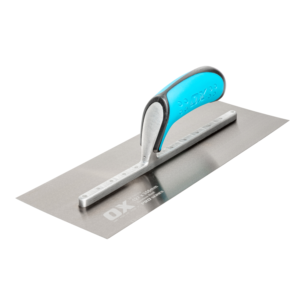 The OX Pro Golden Steel Finishing Trowel is a professional-grade tool with a lightweight tempered stainless steel blade that ensures high-quality finishing. Its pre-worn edges eliminate line and ripple marks, guaranteeing a smooth surface. Featuring a fully riveted aluminum shank for durability and balanced handling, this trowel, available in multiple sizes, features an OXGRIP handle for ultimate comfort.