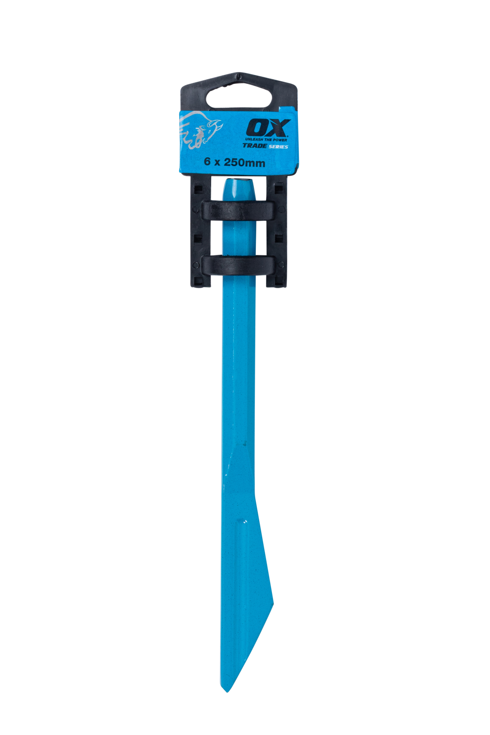 The OX Pro Grooved Plugging Chisel offers high-quality carbon steel construction and a hexagonal shaft for durability. Its chamfered strike zone enhances precision, while the fluted blade design prevents jamming. It measures 250mm x 6mm, offering reliability in various applications.