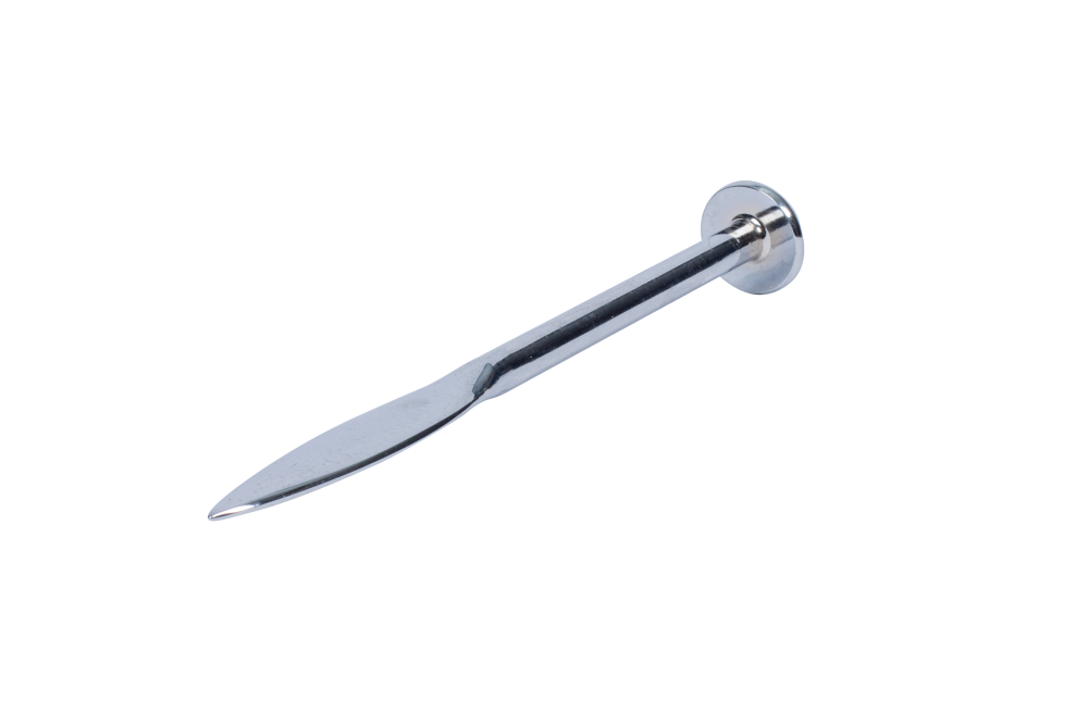 The OX Pro Line Pin is a solid drop-forged tool designed for bricklaying. Its tapered ground point and edges ensure improved penetration, while the large head strike zone aids accuracy. Chrome plating enhances its lifespan, offering durability for extended use.