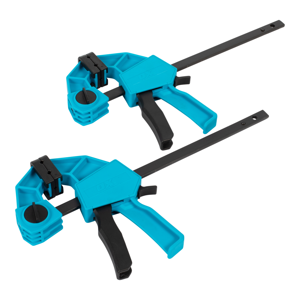 The OX Pro Mini Bar Clamps deliver a robust 70kg clamping force, crafted from high-grade engineered plastic for enhanced durability. Their elongated design ensures potent clamp force with minimal effort, doubling as a spreader when needed. Available in 150mm and 300mm variations, these trade-quality clamps promise versatility and strength for various applications.
