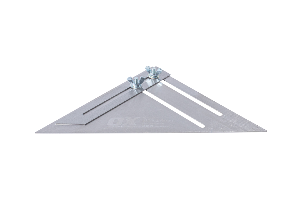 Built with the tradesman in mind, the OX Pro Plasterers Square embodies top-tier quality, crafted from high-grade stainless steel to ensure precision and durability. This square stands out for its full adjustability, facilitating the attainment of precise bevels and cuts essential for plastering tasks. Featuring adjustable wing nuts for angle settings, it allows for seamless customisation as per specific project requirements. Measuring 210mm x 210mm x 300mm, this square guarantees accuracy and versatility in plastering applications, providing tradespeople with a reliable tool for achieving meticulous and consistent results in their work.