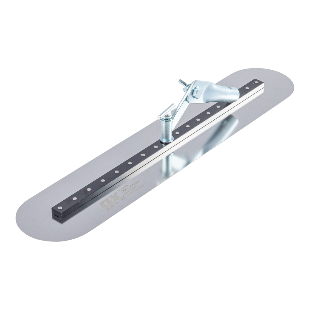 Built with the tradesman in mind, the OX Stainless Steel Fresno Rotating Walking Trowel redefines concrete slab work, providing a professional-grade solution that combines durability and functionality. This walking Fresno trowel attachment is crafted from high-grade stainless steel, ensuring longevity and robust performance even in demanding construction environments. The Fresno bracket design enhances the trowelling process, offering greater ease and efficiency in achieving smooth finishes on concrete surfaces. Designed to fit seamlessly with the OX Telescopic handle OX-P016424, this trowel attachment becomes an integral part of a versatile and adaptable toolkit. The rounded ends, available in 600mm and 900mm lengths, add a layer of versatility, allowing tradespeople to tackle different projects with precision and ease. OX, a brand trusted for delivering quality tools, brings forth a Stainless Steel Fresno Rotating Walking Trowel that stands up to the rigors of the job site.