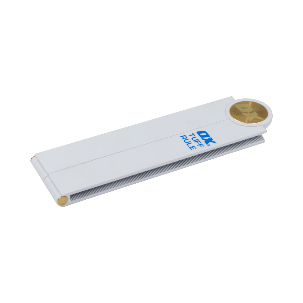 The OX Tuff Rule features a reinforced hinge and is constructed from ABS plastic, delivering exceptional durability and longevity. Moreover, the OX Tuff Rule includes a unique set of features that enhance its usability and versatility. The centre-line feature allows for precise measurements of offset lines and effortless splitting of centres. Whether you’re marking cut lines or locating anchor points, this feature simplifies your tasks, ensuring accuracy in every project.
