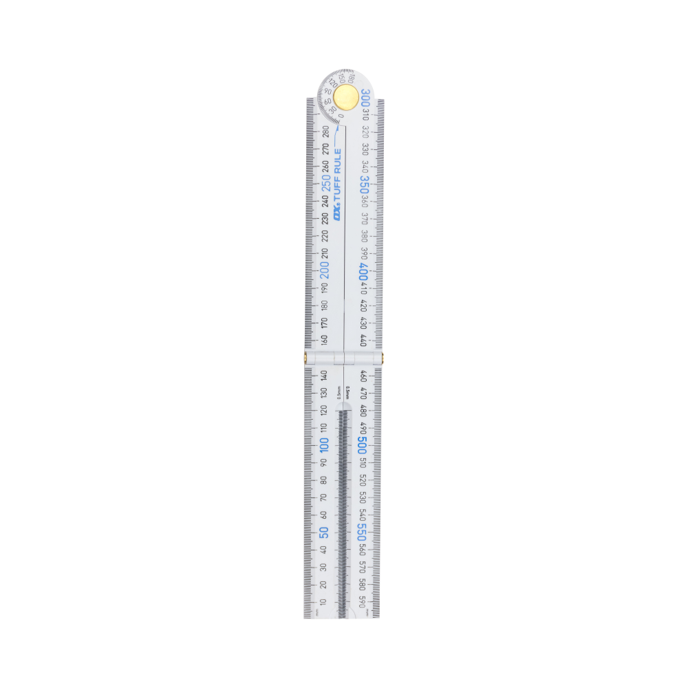 The central swivel hinge further elevates the OX Tuff Rule’s functionality, transforming it into an easy-to-use angle finder with a range spanning from 0 to 180 degrees. This versatility enables you to tackle a wide array of angles and measurements, all with the same dependable tool.