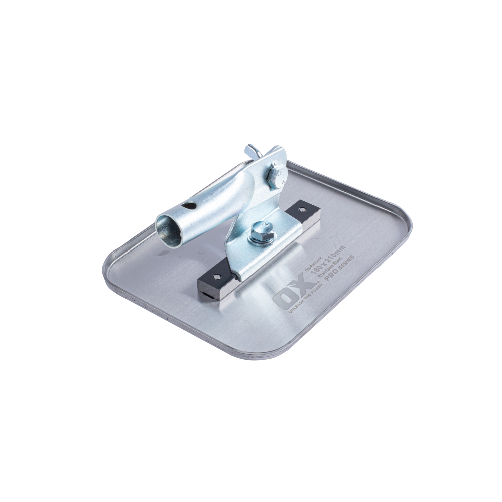 Built with the tradesman in mind, the OX Pro Walking Float stands as a testament to professional-grade quality. Crafted meticulously to meet high industry standards, this float features a high-grade stainless steel blade that ensures exceptional durability and performance across various concrete finishing applications. Its robust construction enables smooth and precise floating of concrete surfaces, promoting a superior finish with each use. The inclusion of a fixed standing bracket enhances its usability, allowing for convenient attachment to handles or poles, and offering stability and control during concrete finishing tasks. The combination of quality materials and thoughtful design makes this walking float an essential tool for professionals seeking reliability and efficiency in achieving impeccable concrete finishes on job sites.