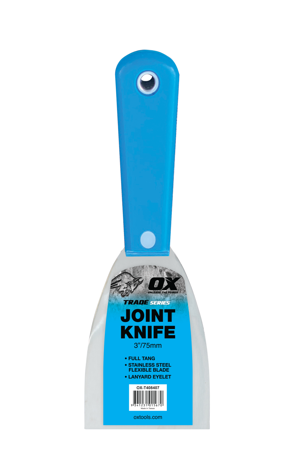 The OX Trade Stainless Steel Joint Knife is the ultimate plastering tool. Crafted with high-quality flexible stainless steel, it features a full-length tang through the handle for added strength. A quality Joint Knife perfect for any plastering or rendering jobs or simply patching.
